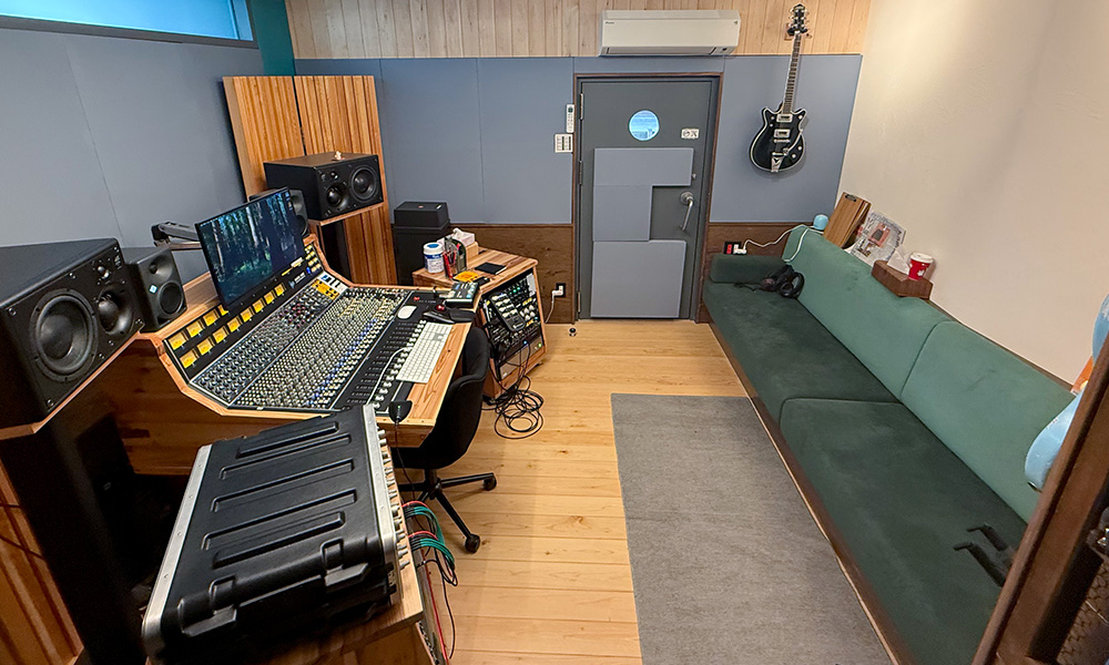 スタジオの響きは低音から高音までバランスよい長さで、ブースも不整形な室と適度な吸音によりアンプの音が乱れずに録音できるようになっています。